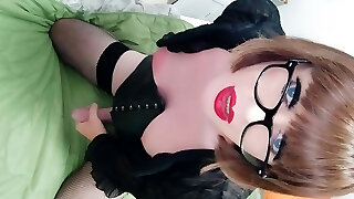Sexy Trans Girl Jessica Bloom Self Deepthroats With a Fleshlight & Buttplug then Swallows Own Jism