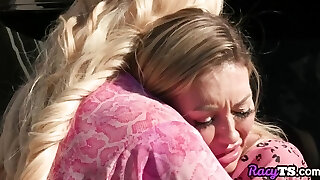 le bouton d'amour de milf cheyenne, bien lubrifié, se fait défoncer par un shemale super-coquin