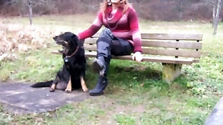 две грудастые женщины резвятся с двумя большегрудыми девушками в футболках на открытом воздухе в парке