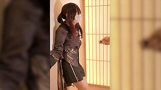 Flexi Sexy Platinum-blonde Shemale Sucks Her Dick And Stretches Her Ass With a Yam-sized Dildo In a Yoga Stance